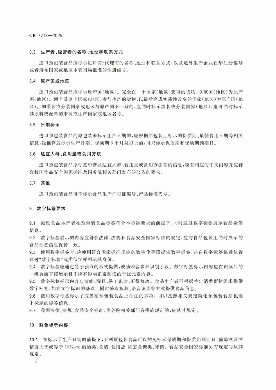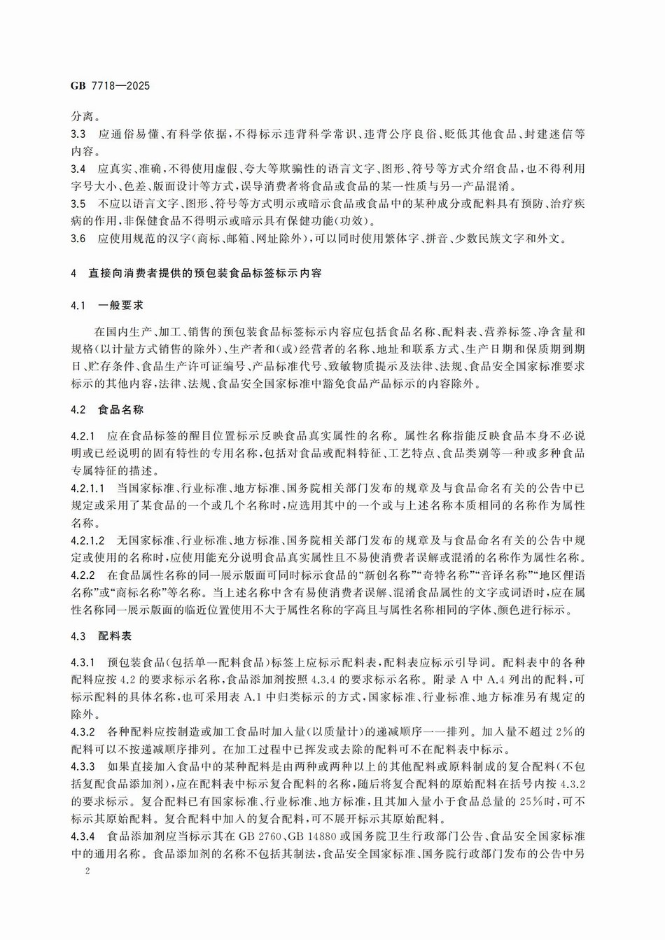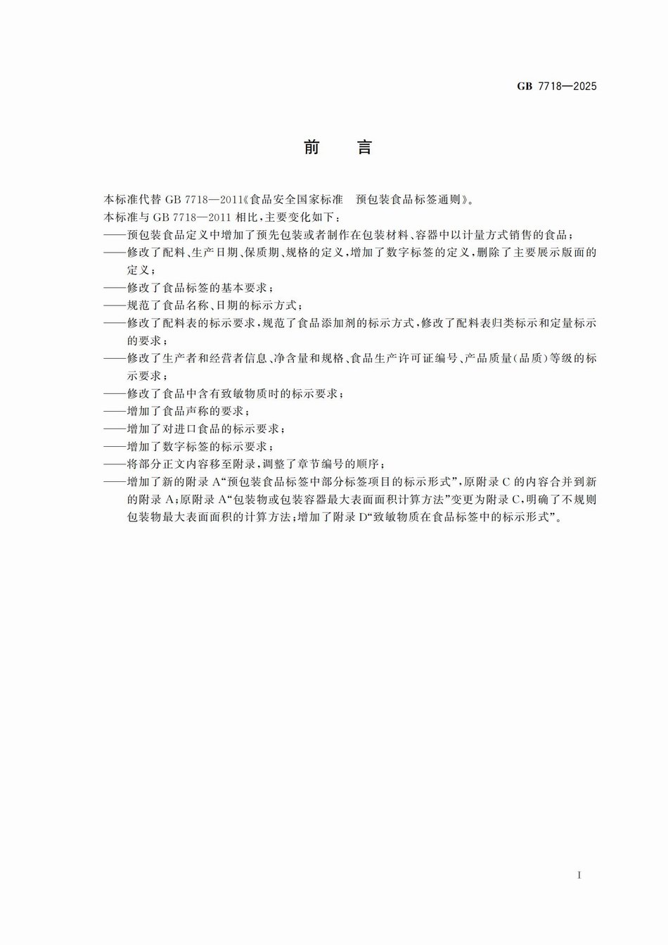 GB7718—2025?食品安全國(guó)家標(biāo)準(zhǔn) 預(yù)包裝食品標(biāo)簽通則