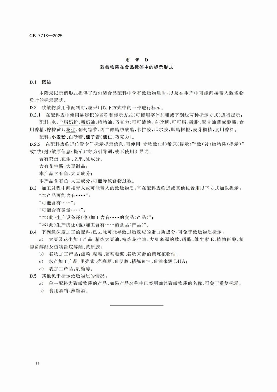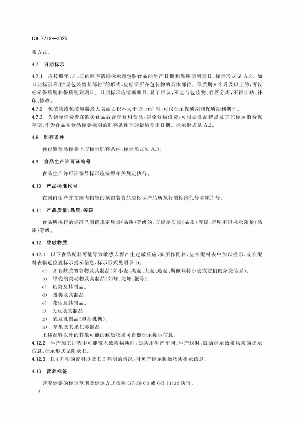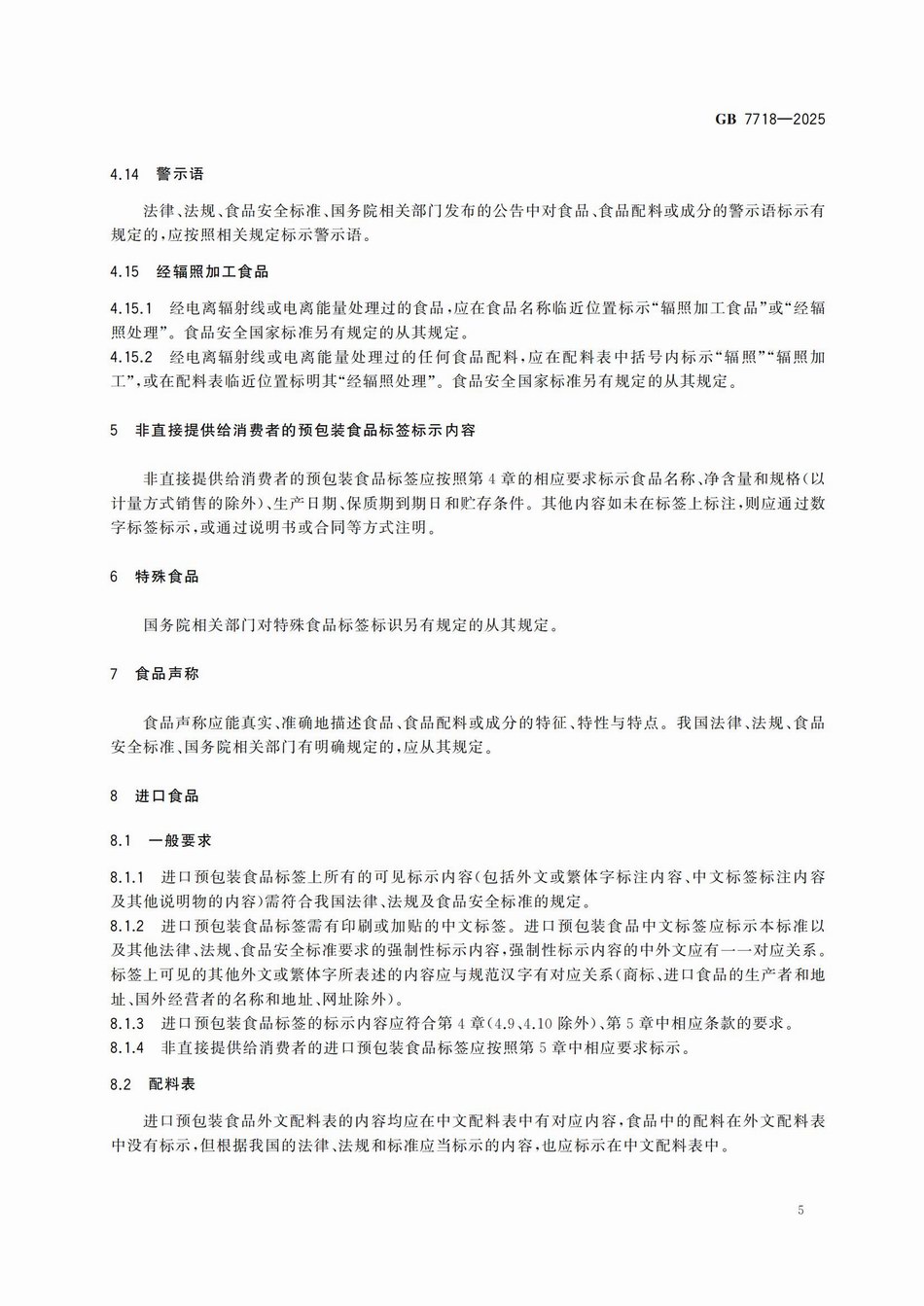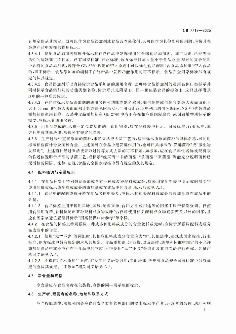 GB7718—2025?食品安全國(guó)家標(biāo)準(zhǔn) 預(yù)包裝食品標(biāo)簽通則
